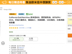 iHerb在10月的每一天都会推出一款特惠商品作为iHerb每日精选特惠,2019年10月29日的特惠商品是CGN品牌的欧米伽800药用级鱼油(1000毫克,30粒鱼软凝胶胶囊),立享5折优惠,并且可以叠加使用通用iHerb折扣码【AVW8840】获得叠加折扣。 本次的优惠活动无...